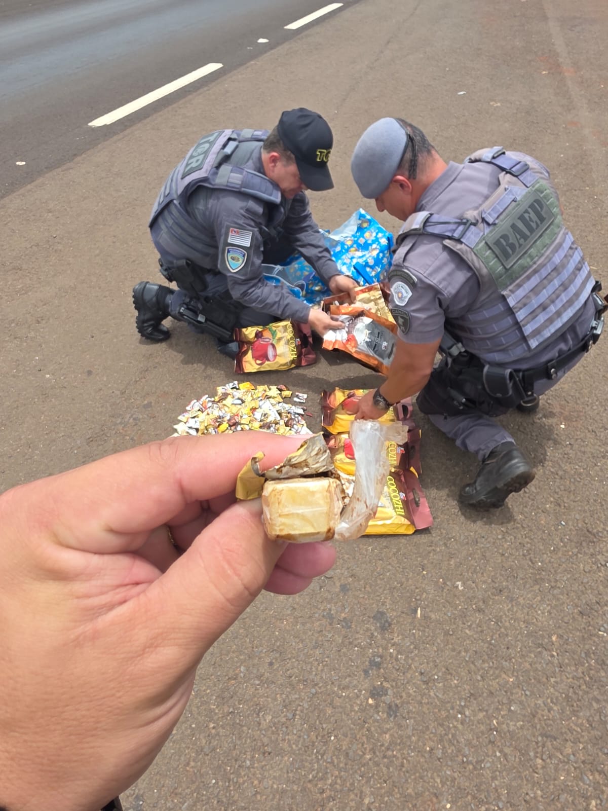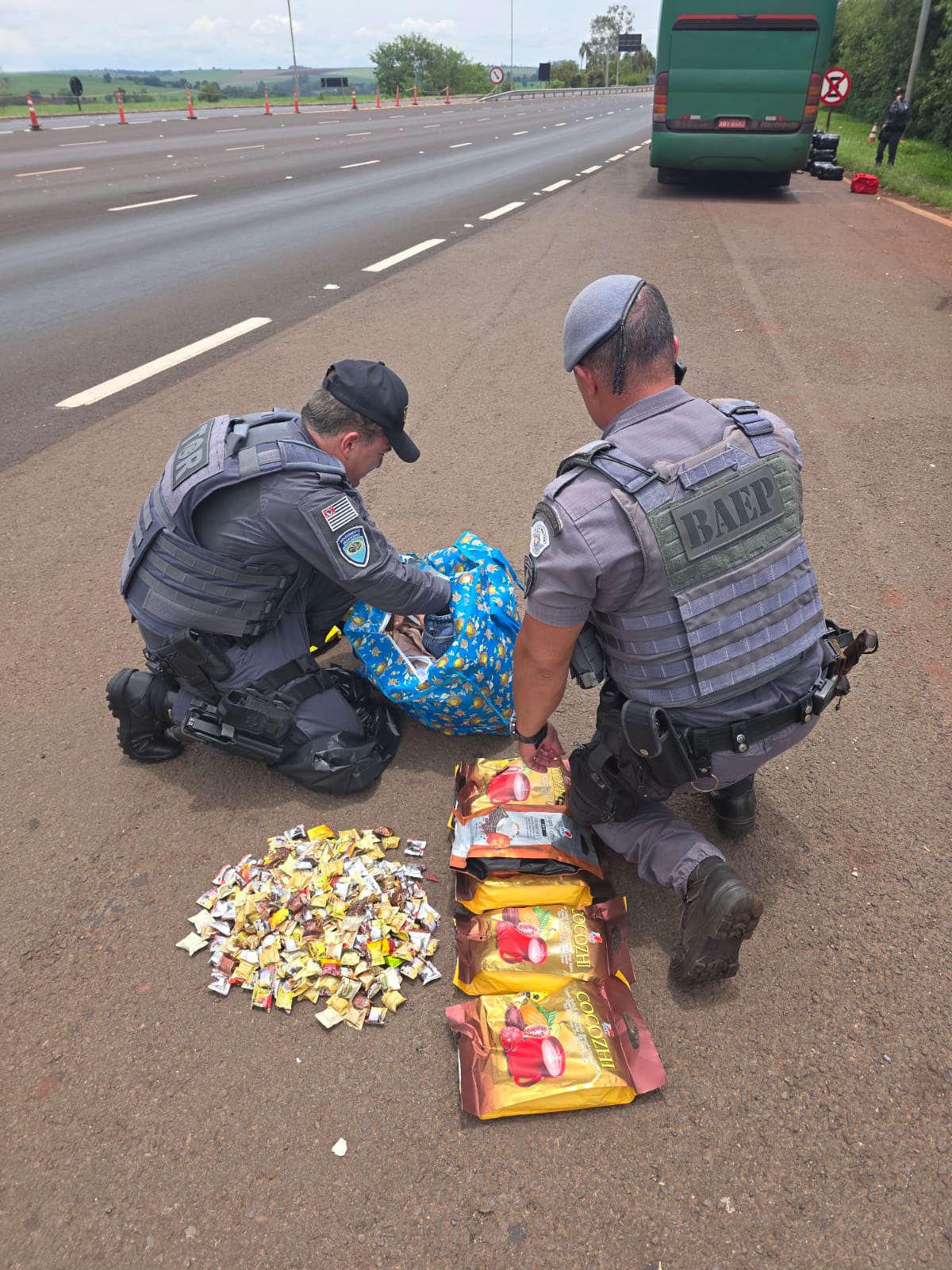 A abordagem ocorreu em um ônibus fretado que fazia o trajeto de Corumbá (MS) a São Paulo (SP). Durante a fiscalização, a cadela policial Zara, da Equipe K9 do 13º BAEP, apontou indícios da presença de drogas em uma mala localizada no bagageiro do veículo.