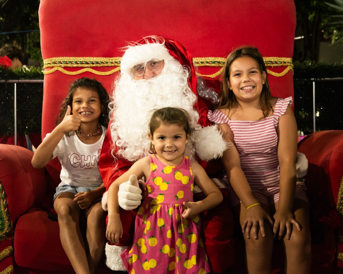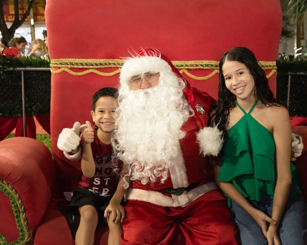 A programação começou com um desfile de carros antigos, que percorreu as ruas no entorno da praça e abriu caminho para a entrada do Bom Velhinho. A cena foi marcada por emoção e alegria, com o público acompanhando Papai Noel em meio a aplausos, músicas natalinas e muitas fotos. Após a chegada, o personagem recebeu as crianças em seu espaço decorado, distribuindo abraços e registrando fotos.