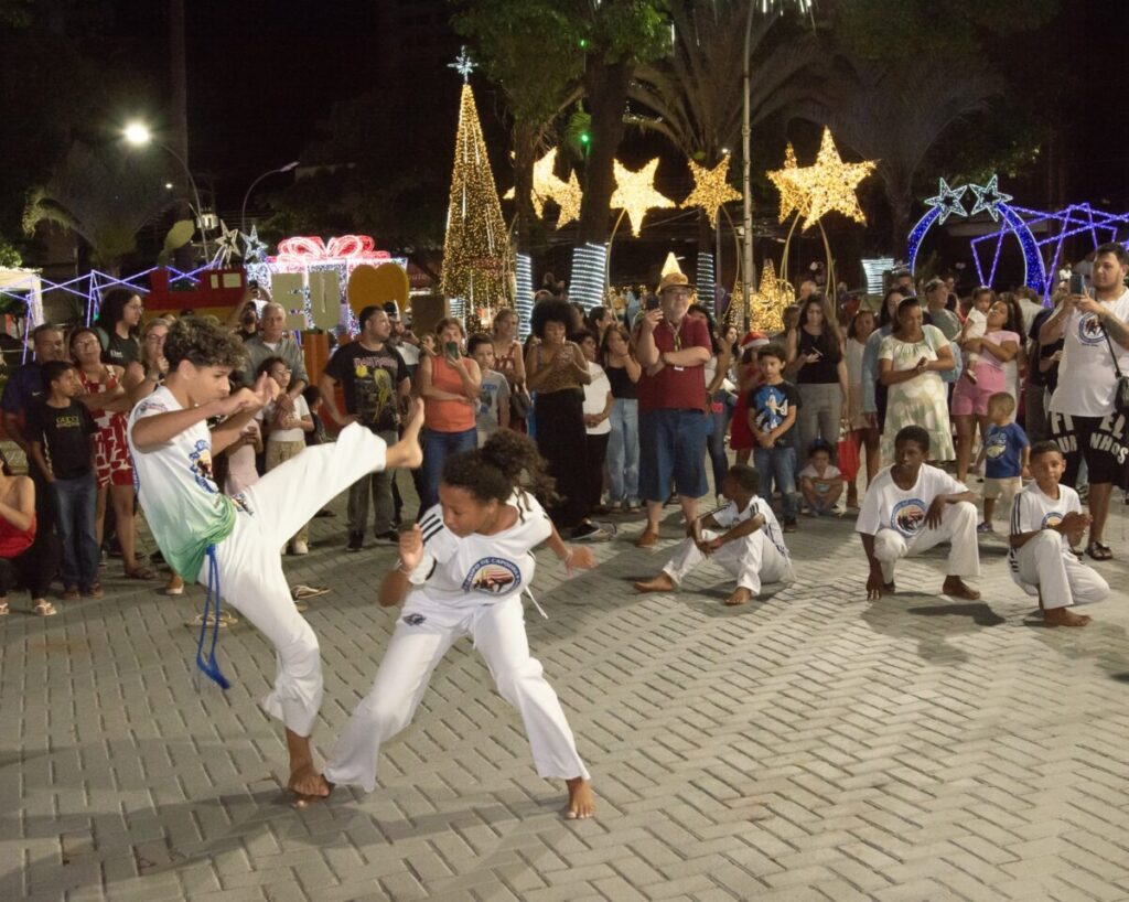 A noite também contou com apresentações culturais, incluindo o bailado “Divertissement”, que trouxe ao palco um espetáculo de dança com coreografias temáticas de Natal. Alunos e professores de capoeira também se apresentaram, contribuindo para a diversidade artística do evento.