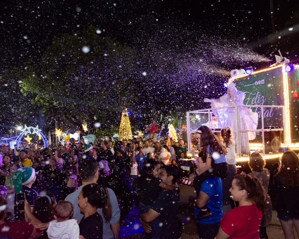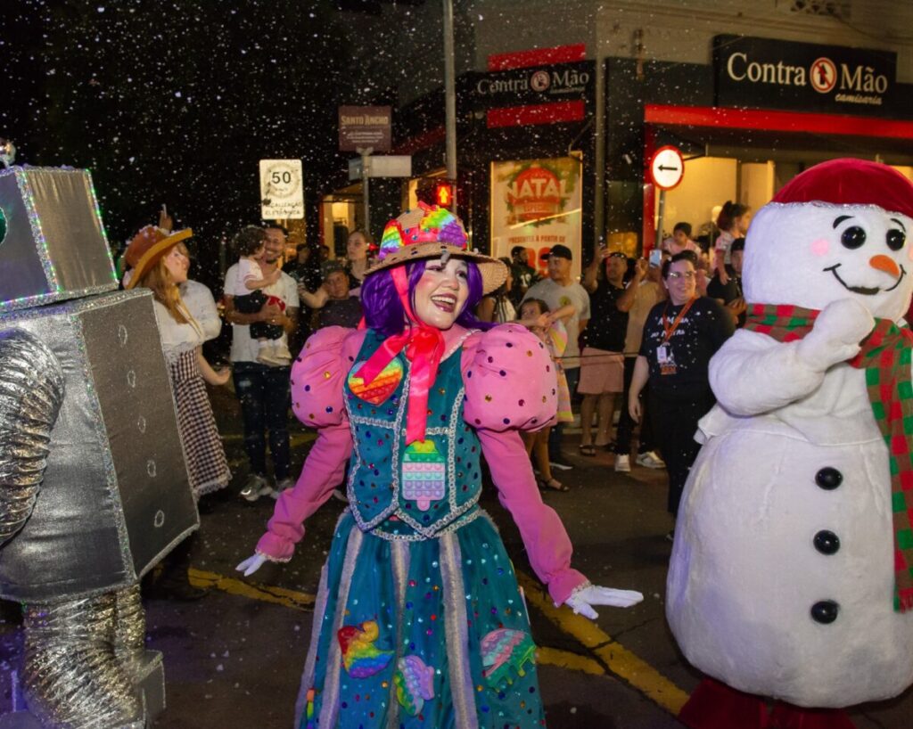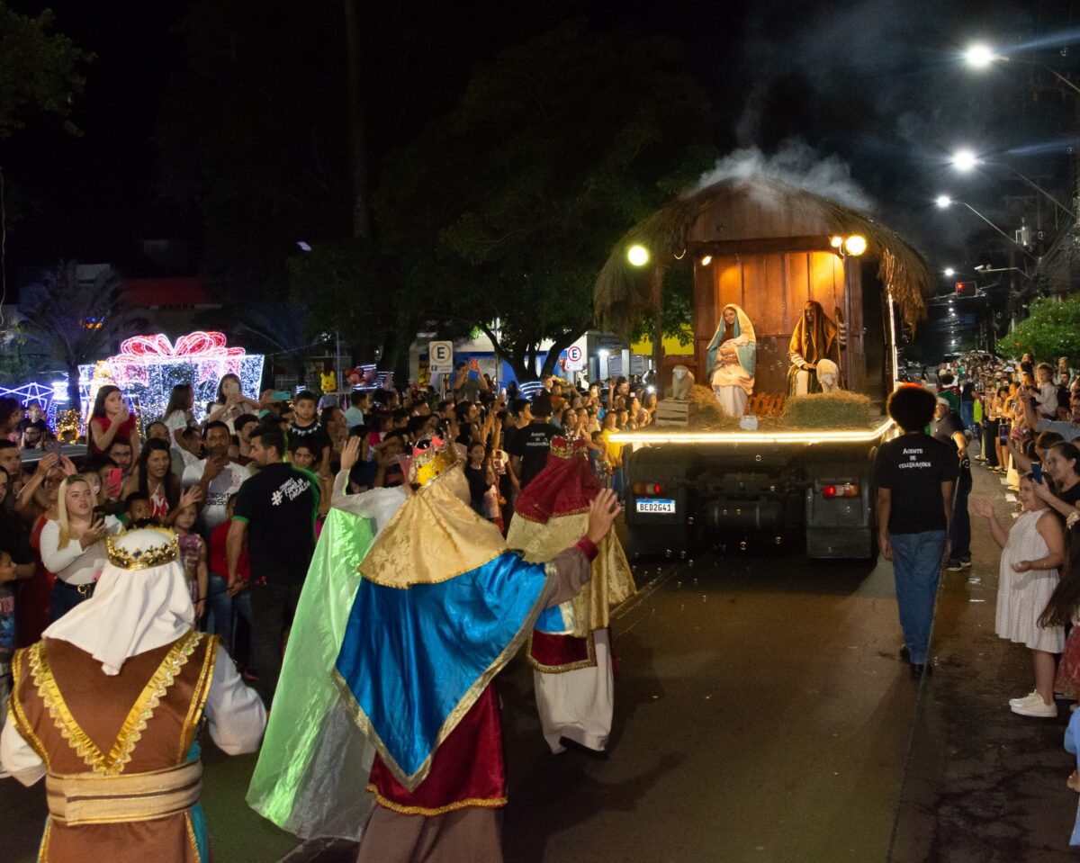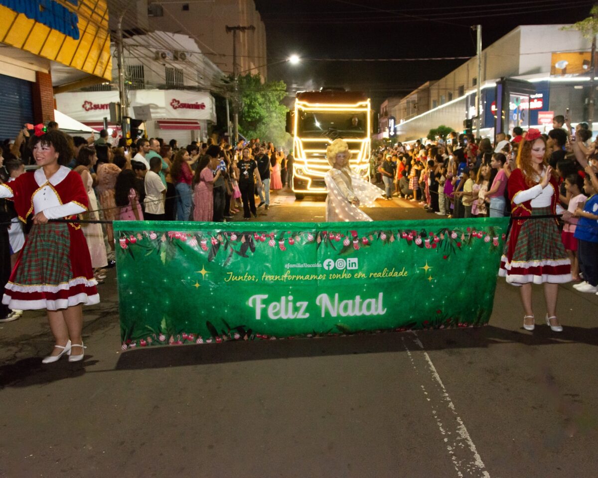 Com a melhora do tempo após as chuvas, o trajeto planejado pela organização pôde ser cumprido integralmente, com início na Avenida Rodrigues Alves e encerramento na Praça Mello Peixoto. Ao longo do percurso, dançarinos e atores deram vida a personagens clássicos do Natal, acompanhados por carros temáticos iluminados que transformaram as ruas em um verdadeiro espetáculo a céu aberto.